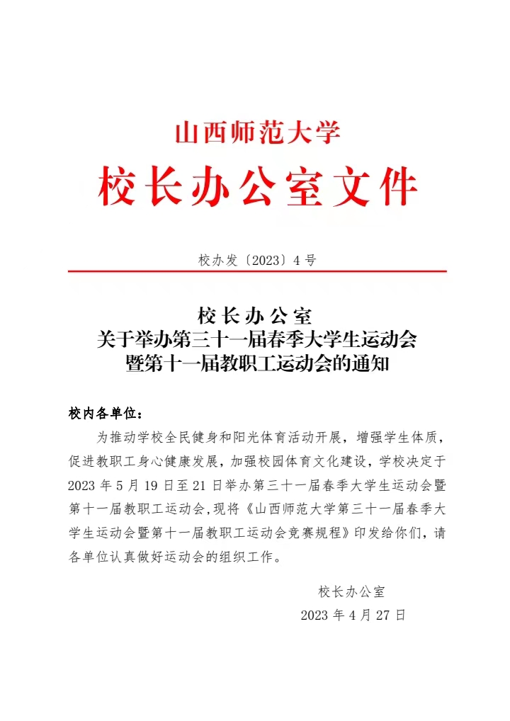 关于举办第三十一届春季大学生运动会暨十一届教职工运动会的通知