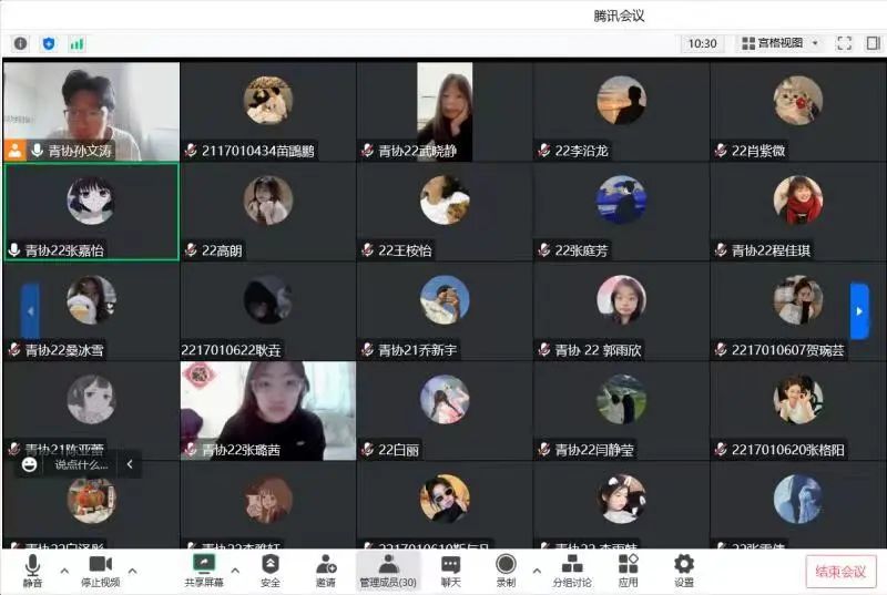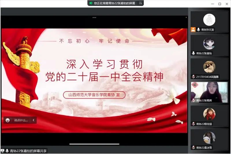 青协于12月6日开展“学习二十大,争做新青年”线上主题宣讲会。、
