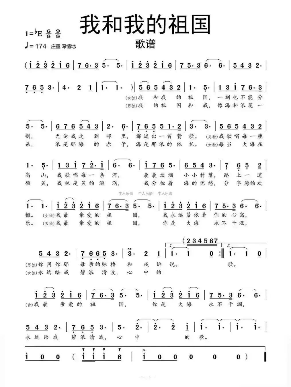 《我和我的祖国》是由张藜填词、秦咏诚谱曲,李谷一原唱的爱国主义歌曲,创作和发行于1985年,是一首具有永久魅力、深受人们喜爱的抒情歌曲。这首歌曲采用了抒情和激情相结合的笔调,将优美动人的旋律与朴实真挚的歌词巧妙结合起来,表达了人们对伟大祖国的衷心依恋和真诚歌颂。该曲于2019年6月17日入选中宣部评出的“庆祝中华人民共和国成立70周年优秀歌曲100首”