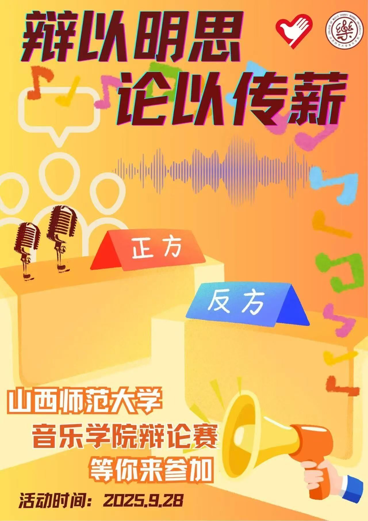 当音乐的灵动碰撞思辨的锋芒,会绽放怎样的火花?山西师大音院辩论赛将于2025年9月28日正式开启,现向全院学子发出诚挚邀约!