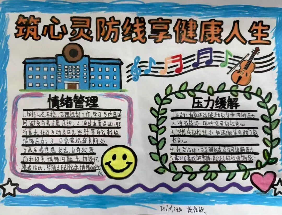 此次活动既让同学们在创作中深化心理健康认知,以手抄报形式让心理知识更直观可感,也引导同学们主动关注自身心理状态,为身心健康成长筑牢根基。