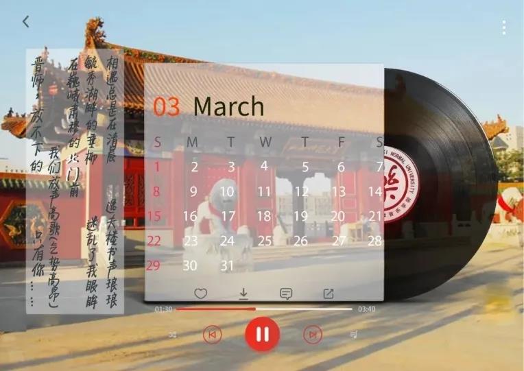 (二)三月本是我们开学入校的日子,但今年特殊的开头,让我们不得不待在家里。我们暂时无法重返校园,都开始想念在师大的日子,想念巍峨肃穆的北门,想念逸夫楼的书声琅琅。让我们一起欣赏师大版《成都》的三月日历吧!