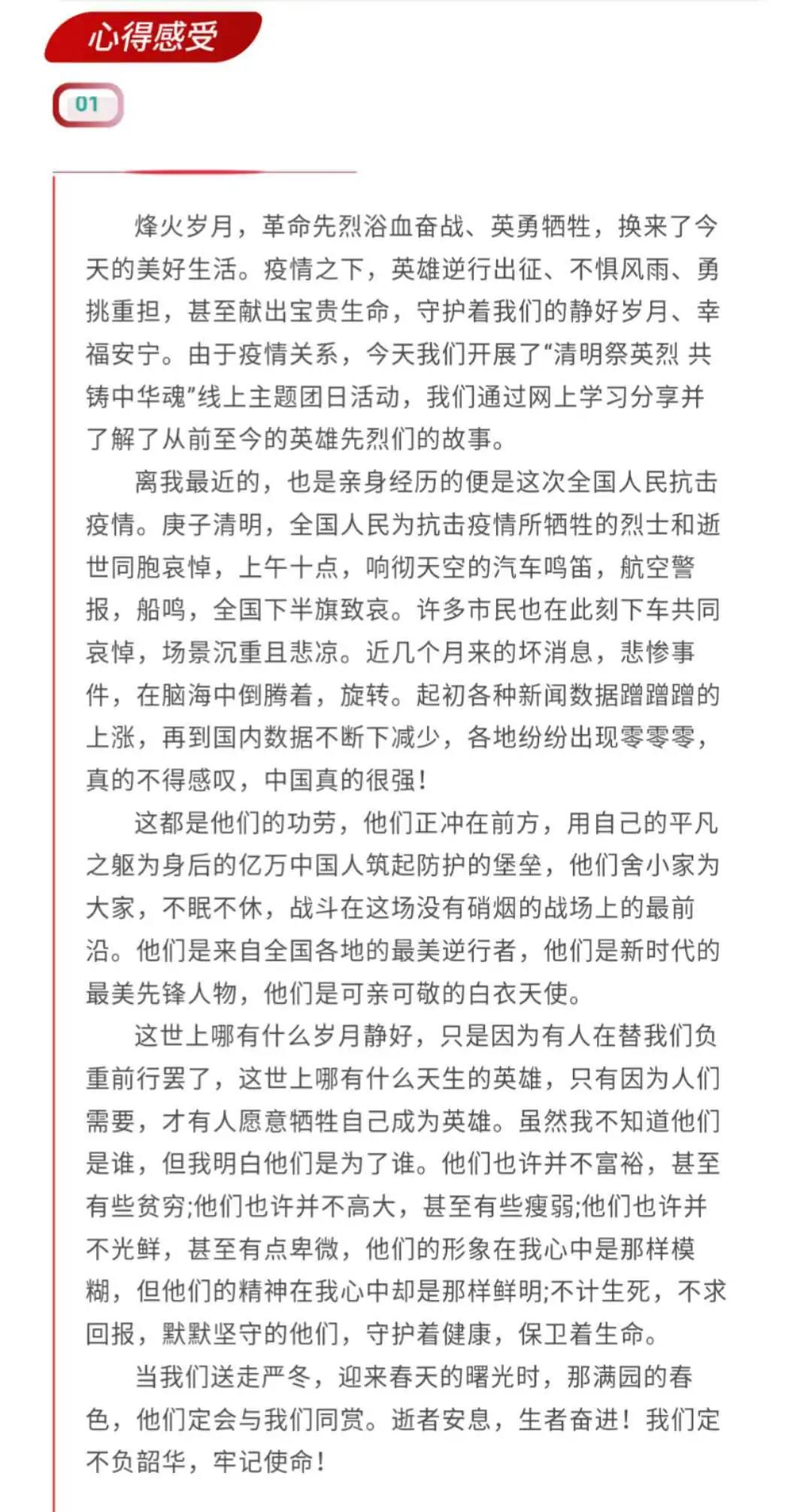 在当前全国上下众志成城、坚决打赢疫情防控阻击战情况下,我院开展线上“致敬·清明”缅怀诵读征集活动和“致敬·英雄”主题征文活动。