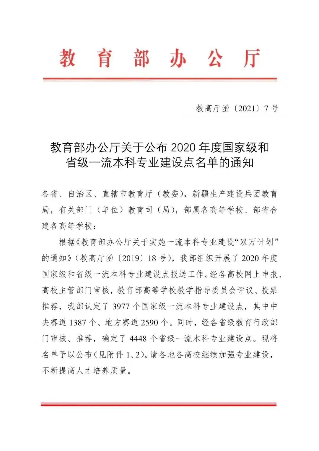 近日,教育部办公厅公布了2020年度获批的国家一流专业建设点(双万计划)名单。走光视频