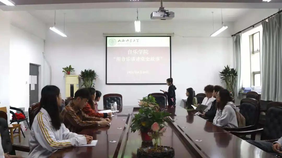 团委于4月20日在会议室开展“用音乐讲述党史故事”主题党史学习教育。
