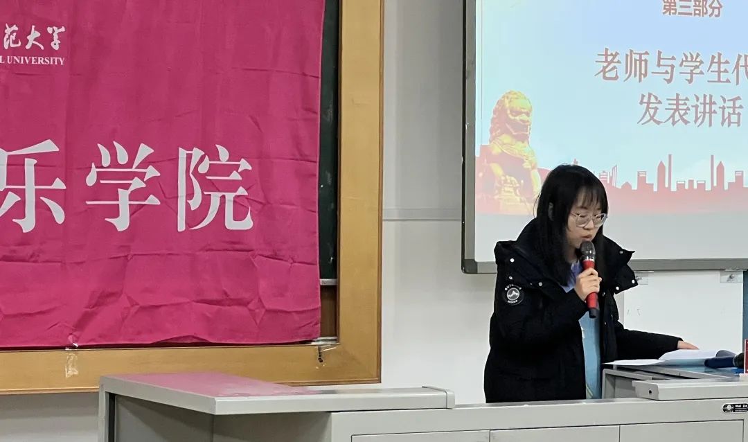 团委学生代表牛一萱同学发为言,她认为应该传承历史经验,践行青年使命。在思想上,树立坚定的理想信念。在学习上,积极主动学习新知识新思想,不断提高专业素养、丰富专业知识。在行动上,始终冲锋在志愿前线,发挥青年团员敢为人先的精神。