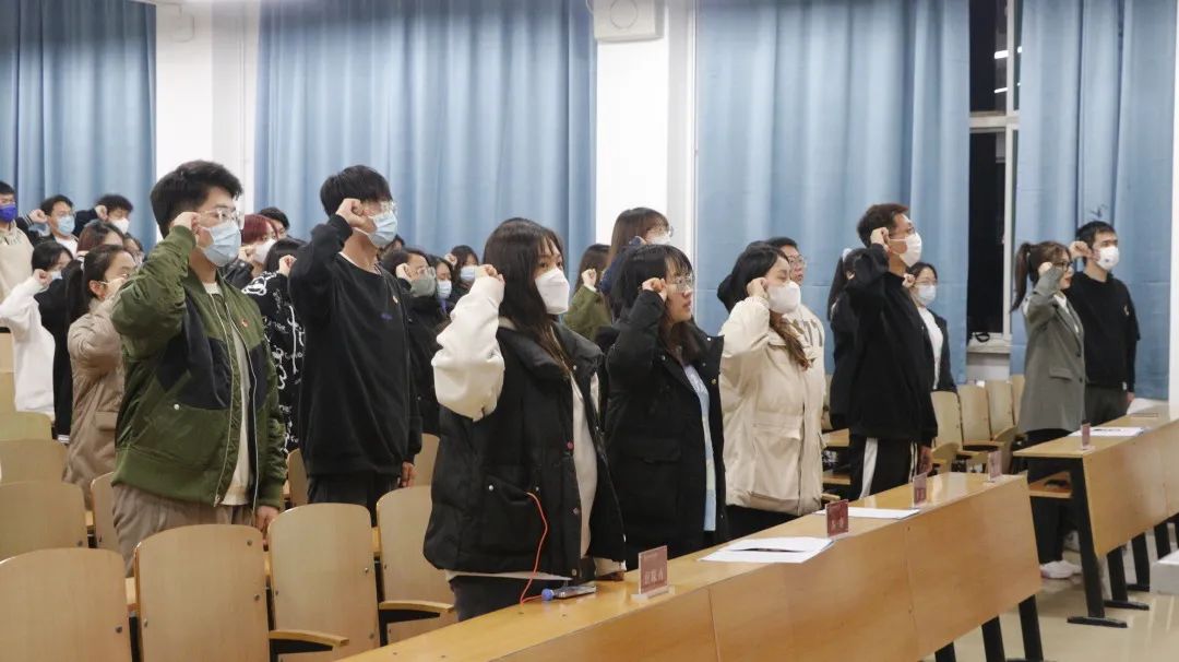 2022级新生入团再教育”活动。院团委副书记李阳、专职辅导员苏睿,学生团委副书记辛霞、学生团委宣传委员高攀红、学生会主席团成员刘佳雄、学生会办公室部门负责人岳琛卉及22级全体新生参加此次活动,活动由院团委工作人员刘星妤主持。