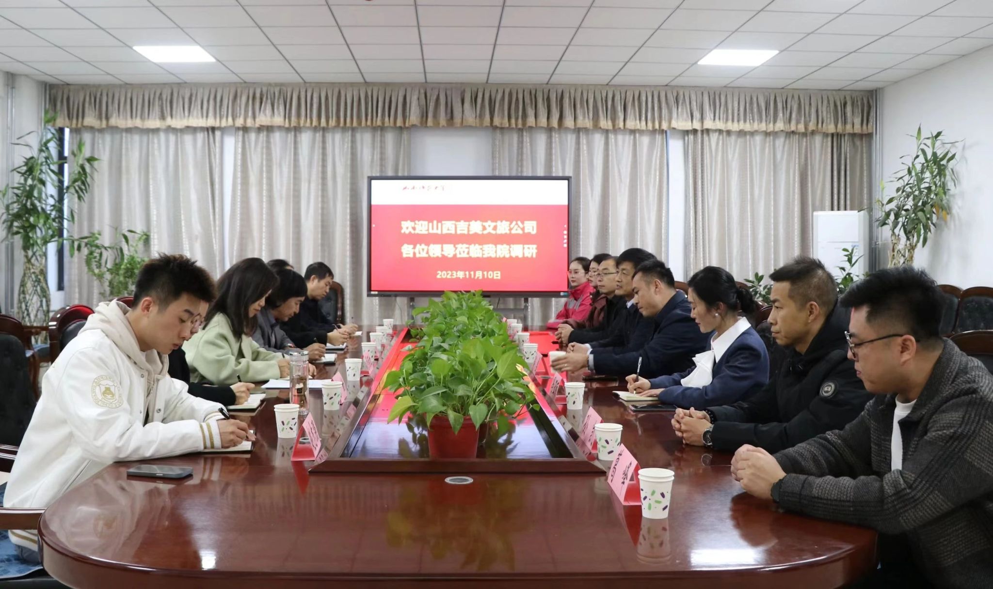 院长刘明星,院党委副书记(主持工作)雷晶,山西文旅景区运营公司副总经理(主持经理层工作)、工会主席郭勇,山西吉美文化旅游投资发展有限责任公司执行董事郭辉,总经理陈敏强及双方主要领导班子成员出席会议。