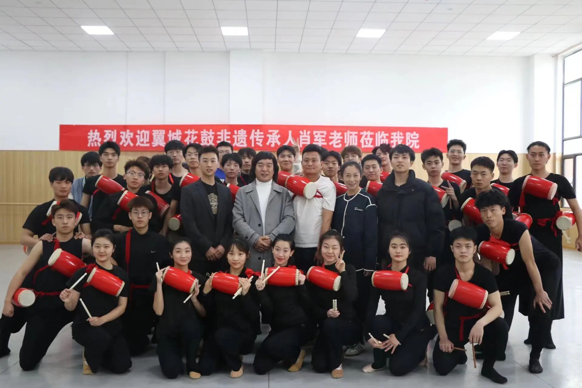 院长刘明星亲临现场,就翼城花鼓在高校中的传承与实践方面,与肖军老师以及学院教师进行了深入交流。课程结束后,我院将肖军老师聘请为舞蹈系实践教学指导老师。期待日后在肖军老师的指导下,舞蹈系师生能够进一步学习了解有关翼城花鼓的知识。