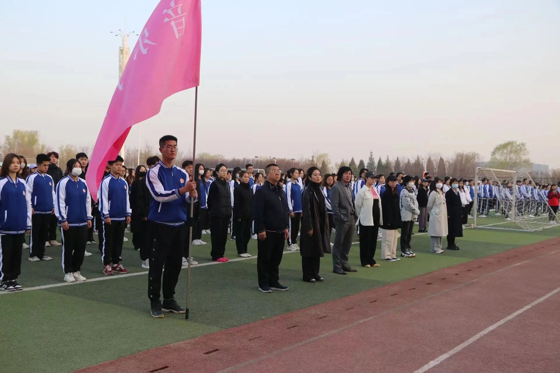 院长刘明星,院党委副书记(主持工作)雷晶,副院长曹晓磊,院团委副书记李阳,专职辅导员苏睿,专职辅导员吉璐,全体辅导员及全体学生参加此次升旗仪式。