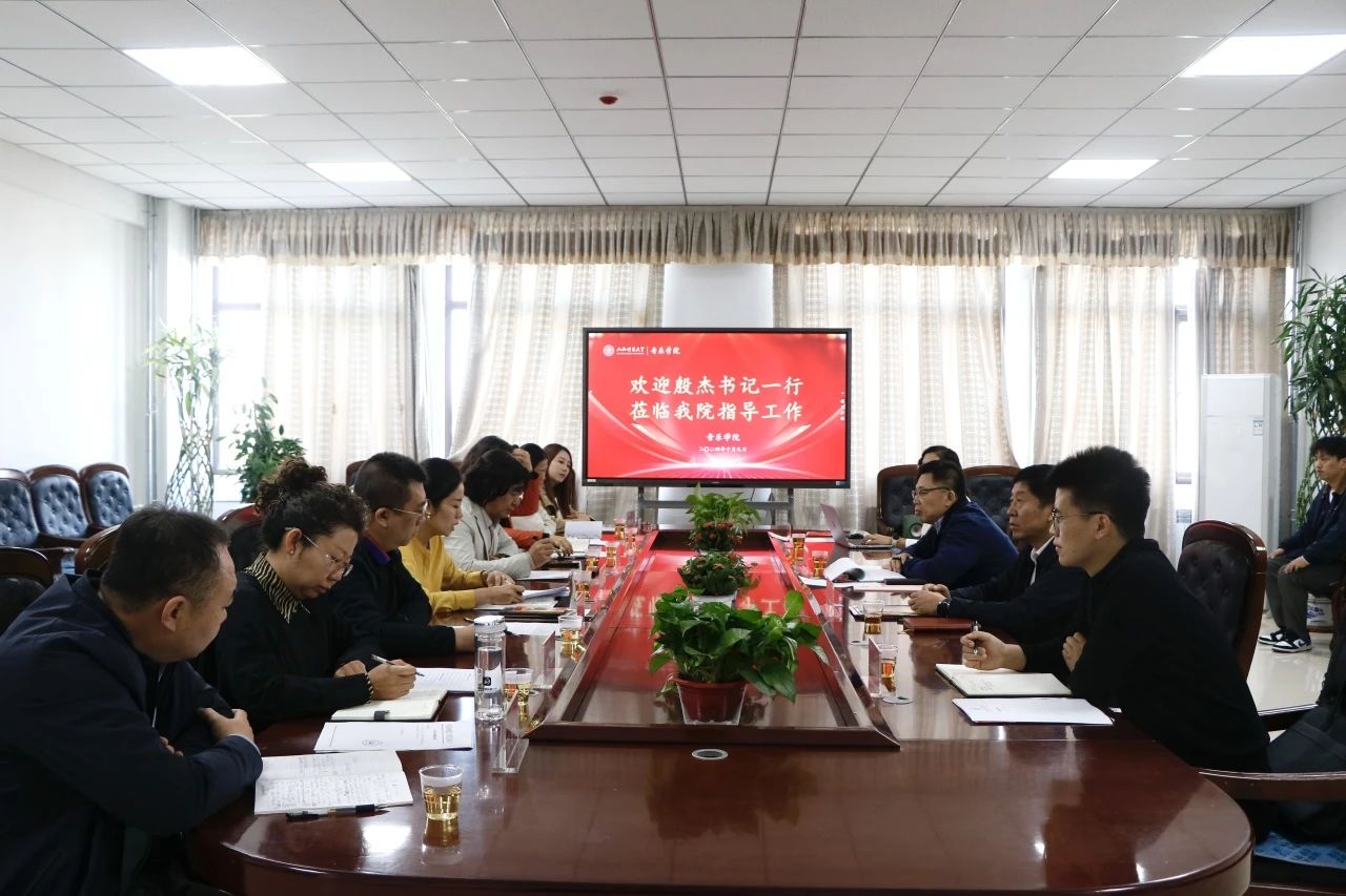 10月9日上午,校党委书记殷杰、校党委副书记王志强一行莅临我院调研座谈。院班子成员及教师代表参加了此次调研座谈会,会议由院党委书记雷晶主持。