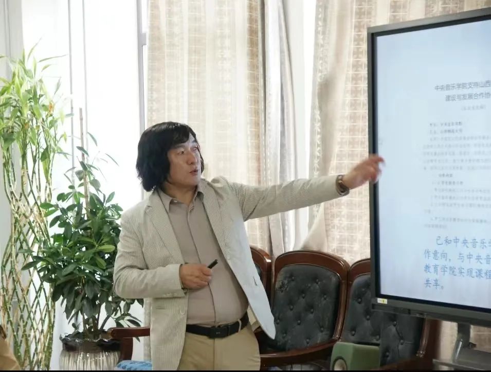 的整体工作表示了肯定。他表示,音乐教育在全面提高学生综合素质和艺术修养方面扮演着不可或缺的角色,是学校教育体系中的重要一环。他指出,在今后的工作中,学院应以党的建设为引领,确保办学方向与党的教育方针保持一致,这是学院健康发展的根本保证;将立德树人的理念贯穿于音乐人才培养的全过程,更要强化美育与德育的协同育人功能,在育人上充分体现师范教育特色。他强调,要围绕高质量办院、高水平办学,以学科建设为龙头和抓手,深入谋划学院发展路径,凝练学科方向,聚焦山西特色和师范特色,积极发展交叉学科,并充分利用人工智能技术等推动传统文化的创造性转化及创新性发展。同时强调,学院应当通过有组织科研等路径,布局大动作、催生大成果、形成大影响。