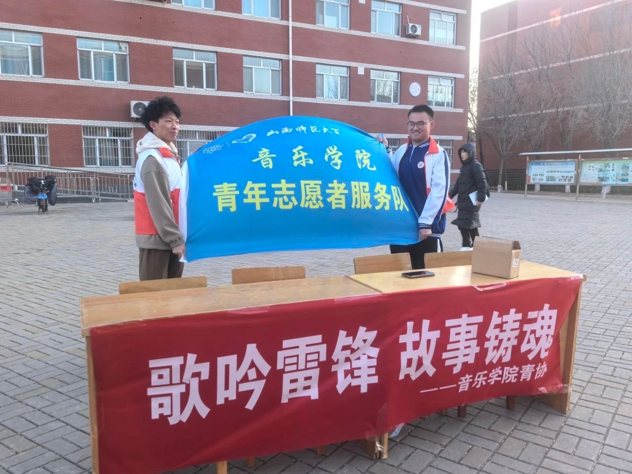 青年志愿者协会在六号教学楼前举办了“歌吟雷锋,故事铸魂”主题活动。