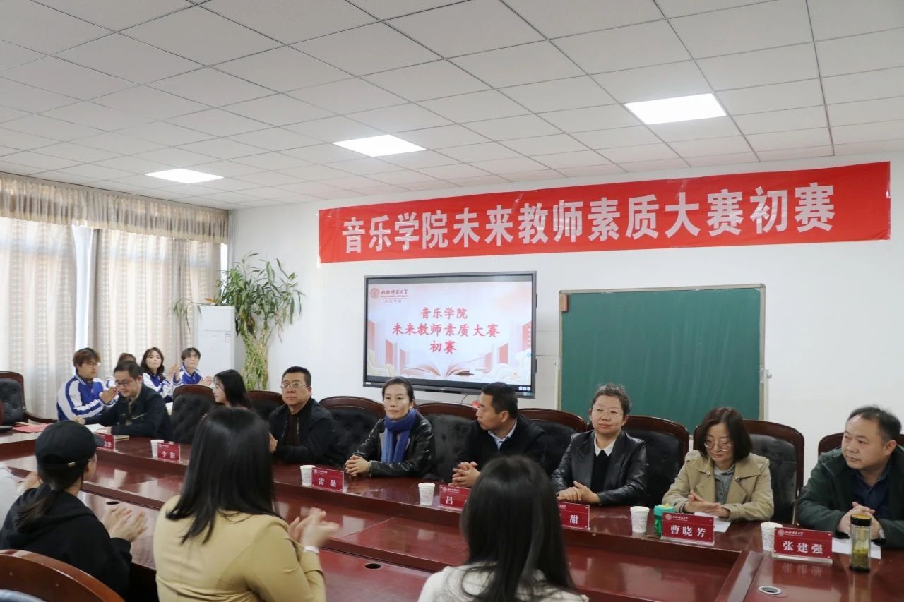 于4月2日上午在音乐舞蹈综合楼会议室举行了“未来教师素质大赛”开幕式。院党委书记雷晶,院长刘明星,院党委副书记吕垒,副院长曹晓磊、陈甜,团委副书记李阳,校教学指导委员会委员张建强,院教学指导委员会委员、键盘系主任曹晓芳以及教学秘书高靖泽等参加了此次活动。