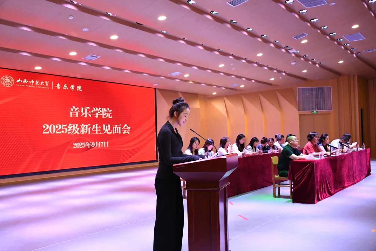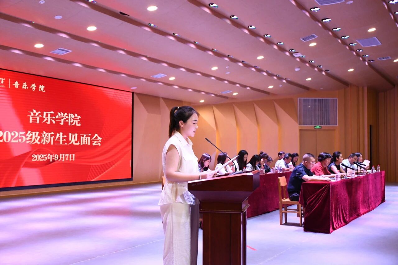 2025级新生见面会在音乐舞蹈综合楼四楼音乐厅隆重举行。院党委书记雷晶、院长刘明星、院党委副书记吕垒、副院长曹晓磊、副院长原丽红、管弦系主任解晓瑞、作曲与理论系主任王文卓、声乐歌剧系主任韩再红、民乐系主任成燕、舞蹈系主任庞蓉以及全体新生辅导员出席了本次会议,会议由院党委副书记吕垒主持。