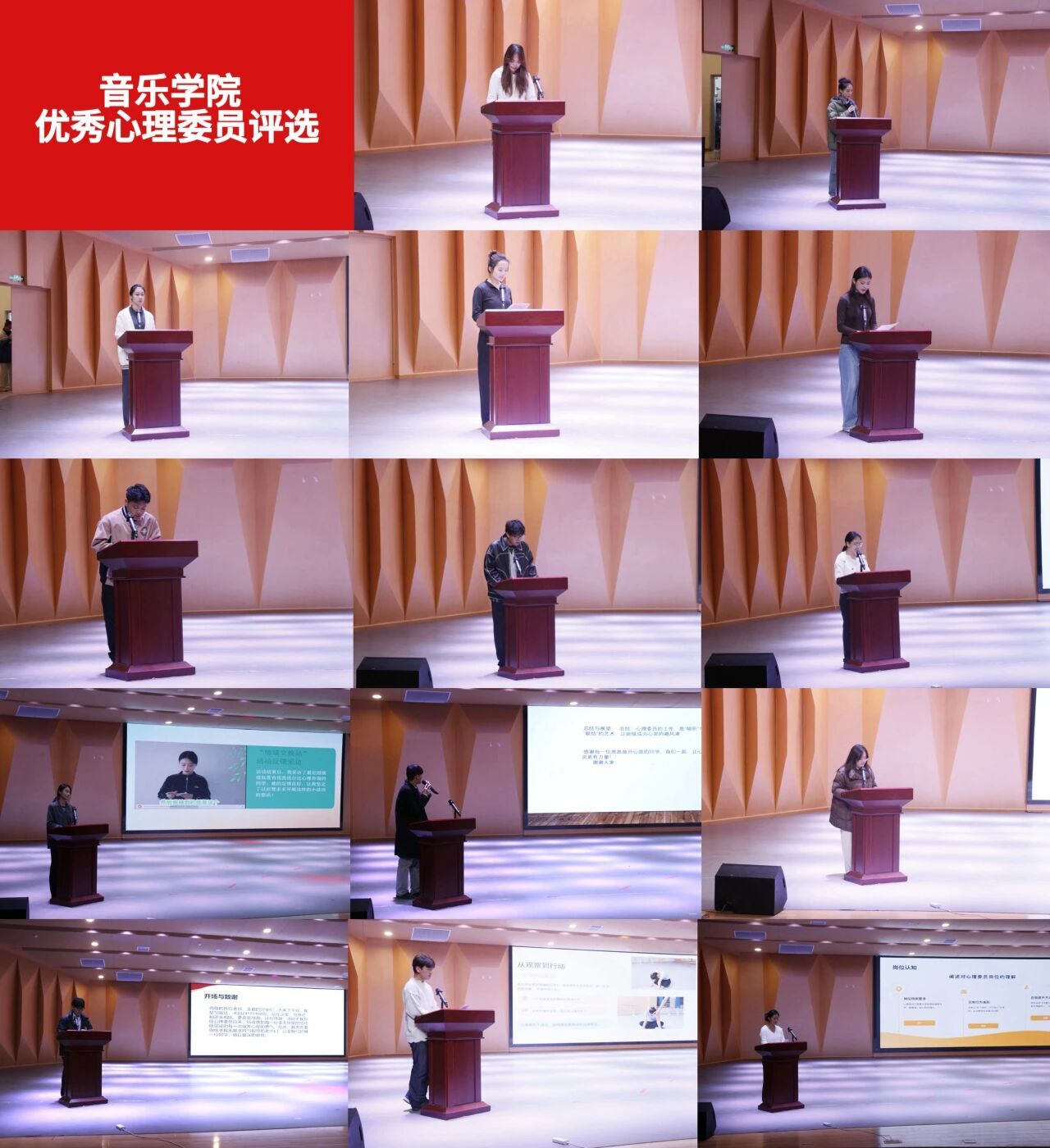 汇报环节分为两大板块。23、24级先进班集体候选班级围绕班级基本概况、组织建设、学风建设、文化活动、阶段成果及未来规划展开阐述,通过具体案例展现班级在专业学习、集体凝聚力等方面的鲜明特色与亮眼成绩;优秀心理委员候选人则结合自身履职经历,分享在班级心理关怀、情绪疏导、心理健康活动组织等方面的实践经验,彰显出对班级同学心理成长的责任与担当。充分展现音院学子积极向上的精神风貌与扎实的综合素养。