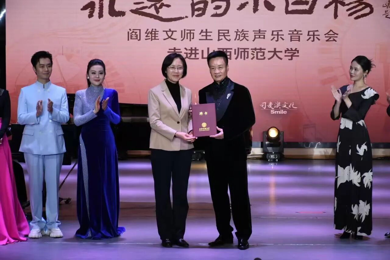 校长许小红教授将“客座教授”聘书递到阎维文老师手中时,聘书的纸页轻颤——那是艺术与教育在这一刻的榫卯咬合,是“以艺术引育人才、以美育塑造品格”的长效契约。