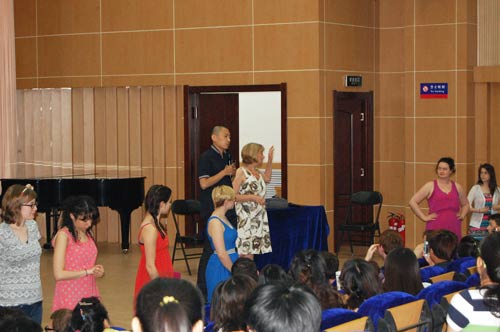 罗兰·史瓦博教授针对音乐剧的发声技巧与表演方式进行了详细的讲解,并对在场学生进行现场教学,根据各位同学演唱时表现出的不同情况,对他们的发声技巧及表演中情感上的处理进行了深入的指导。罗兰·史瓦博教授的精彩演讲展现了其深厚的演唱功底及精湛的演技,激发了广大师生对音乐剧的浓厚兴趣。最后,此次学术报告在持续热烈的掌声中落下帷幕。