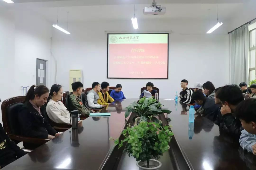 安全工作巡查制度》学习会议。院党委副书记席振萍、辅导员成燕出席了会议,各班班长及团支部书记参加了会议。