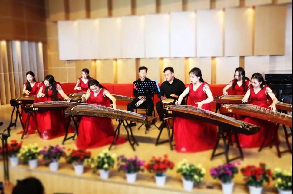 中场由我院筝乐团带来古筝重奏《沙漠玫瑰》。乐曲描绘了赤足的少女踏着脚铃随风飘来。她的明眸似月牙泉一样清澈,她的舞姿堪与敦煌壁画的舞神媲美,她的笑声与脚铃合成最迷人的旋律。
