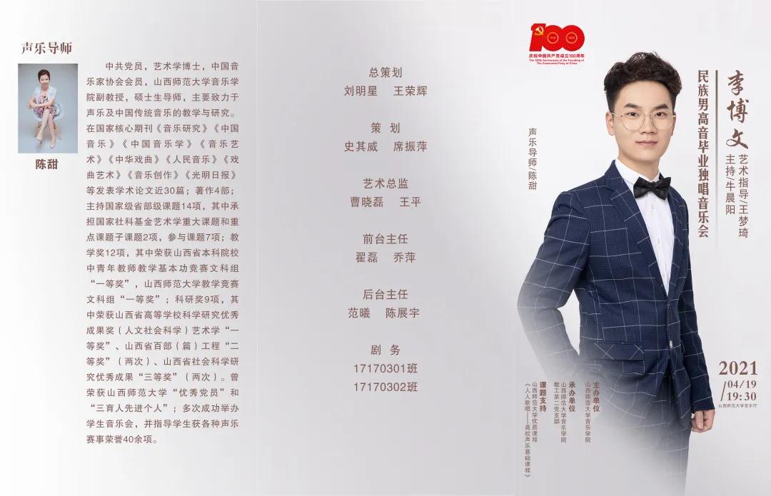 2021年4月19日晚7点30分,李博文民族男高音毕业独唱音乐会在走光视频