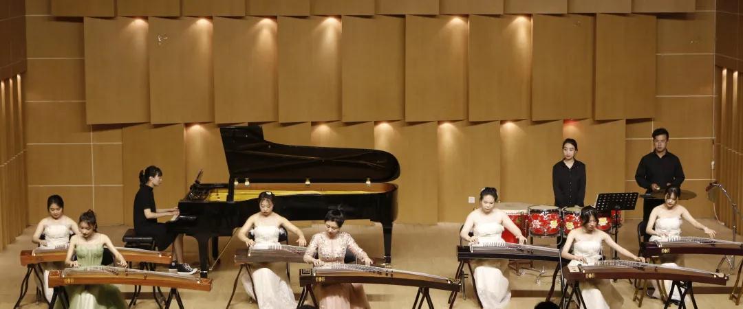 上半场,由陈展宇老师带领其学生一起合奏的《清风•舞月》拉开帷幕,其旋律轻快,配以钢琴、打击乐,勾勒出优美、欢快、跳跃的清新画面,带动现场氛围。随后一曲《云裳诉》凄婉哀怨,大幅度的全弦刮奏,犹如掀起层层波浪,将灵与情的交汇推向高潮,让现场观众陶醉其中。《夜深沉》史晨曦技术精湛,按滑技巧和极具颗粒性的快速弹奏的交替使用,使古筝的迷人魅力得以充分的展现,听来别有一番韵味。观众们再也按耐不住内心的敬佩与欢乐,站起来鼓起热烈而富有激情的掌声。