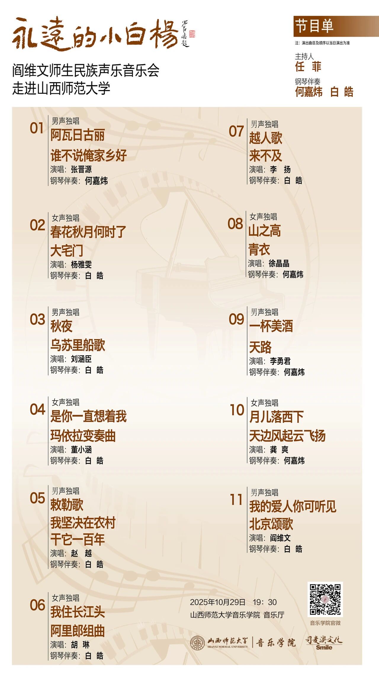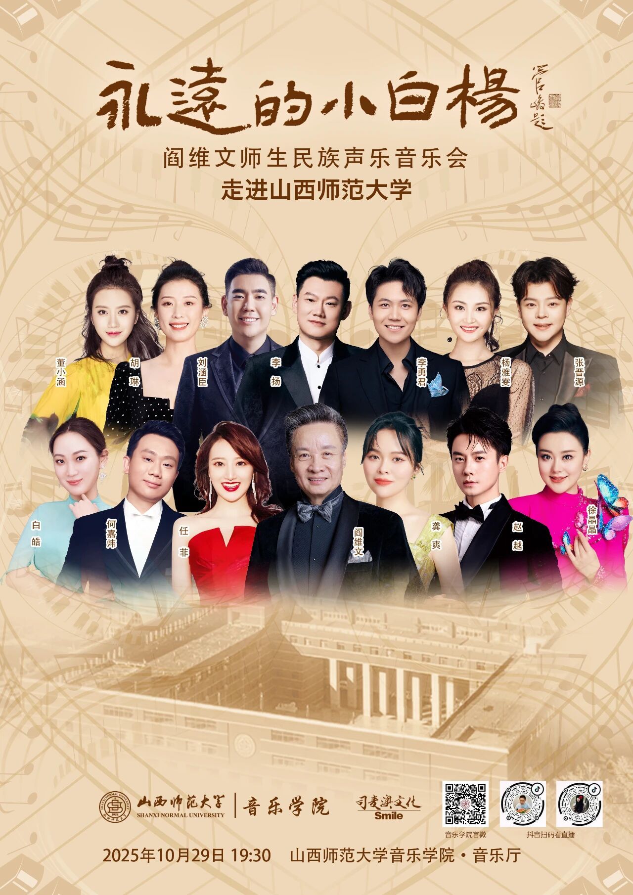 奏响!10月29日19:30,“永远的小白杨”阎维文师生民族声乐音乐会将在走光视频