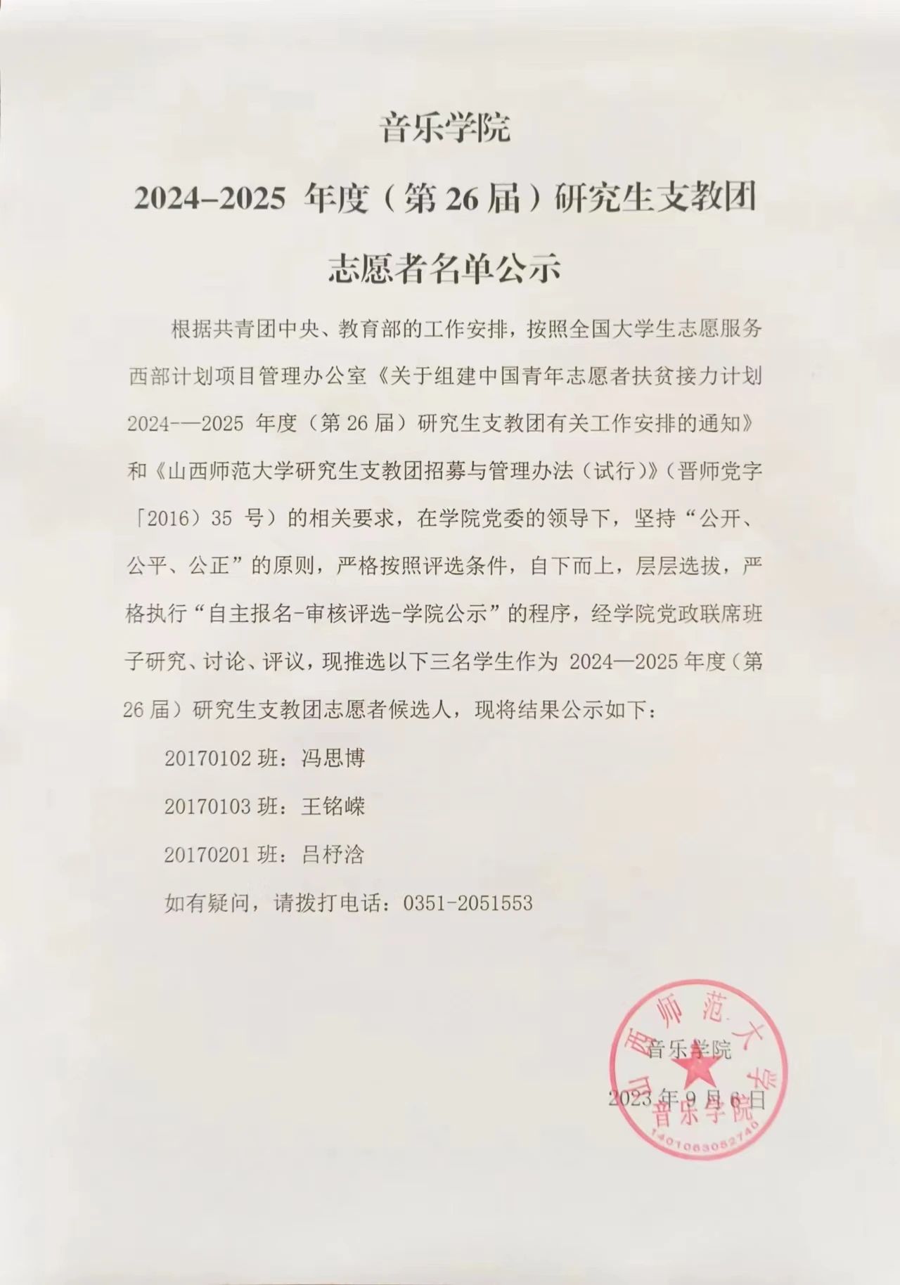 走光视频 2024-2025 年度(第26届)研究生支教团志愿者名单公示