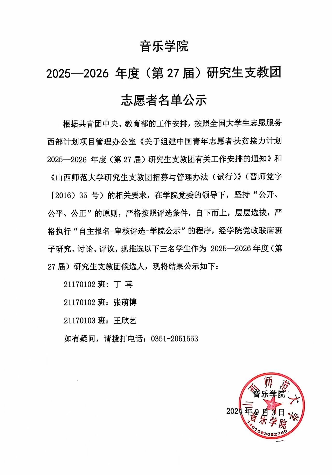走光视频 2025-2026 年度(第27届)研究生支教团志愿者名单公示